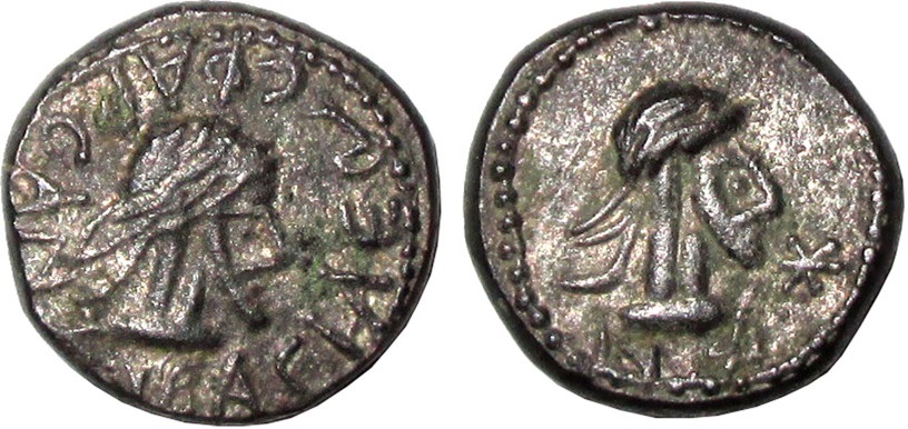 - Бюст императора вправо, год ΝΦ (550 г б.э.), справа «звезда»