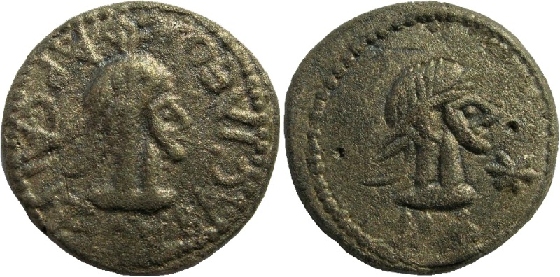 - Бюст императора вправо, год ΝΦ (550 г б.э.), справа «звезда»