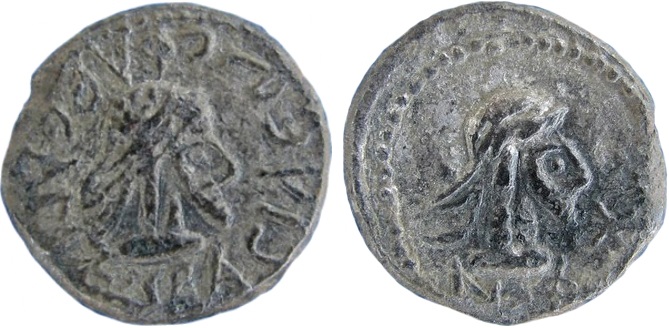- Бюст императора вправо, год ΝΦ (550 г б.э.), справа «звезда»