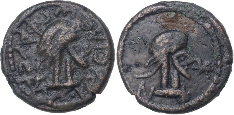 - Бюст императора вправо, год ΝΦ (550 г б.э.), справа «звезда»
