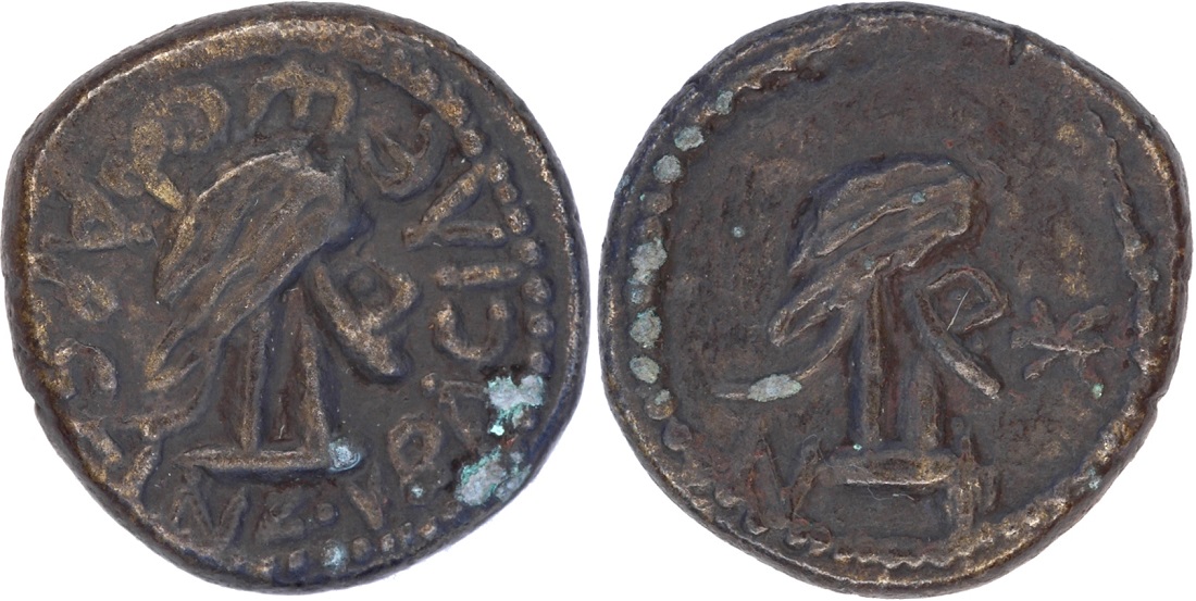 - Бюст императора вправо, год ΝΦ (550 г б.э.), справа «звезда»