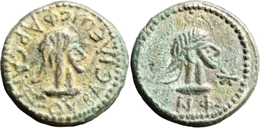 - Бюст императора вправо, год ΝΦ (550 г б.э.), справа «звезда»