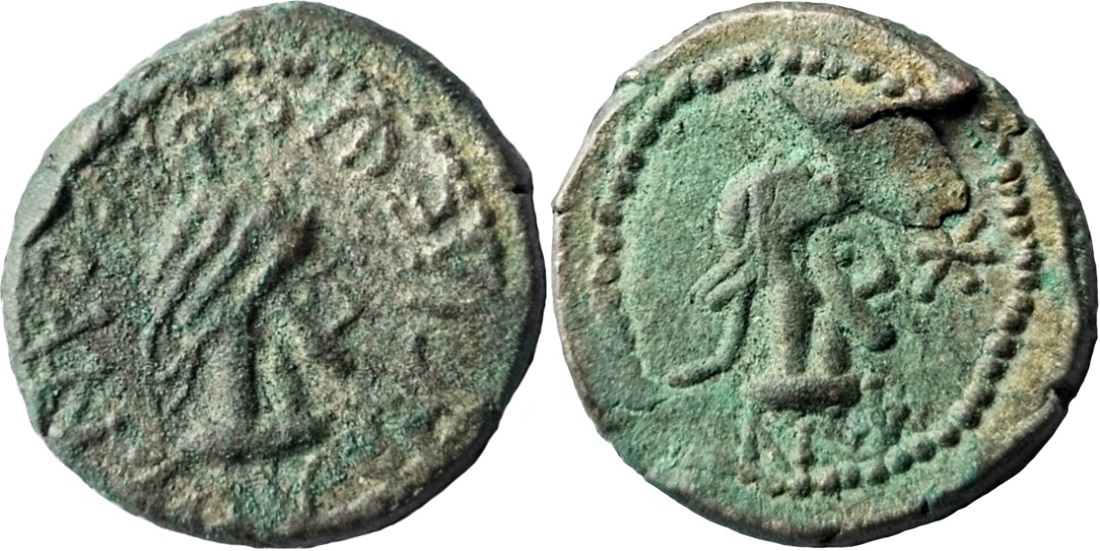 - Бюст императора вправо, год ΝΦ (550 г б.э.), справа «звезда»