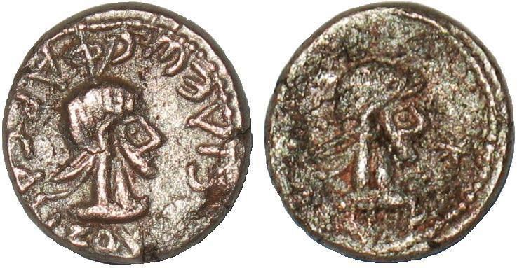 - Бюст императора вправо, год ΝΦ (550 г б.э.), справа «звезда»
