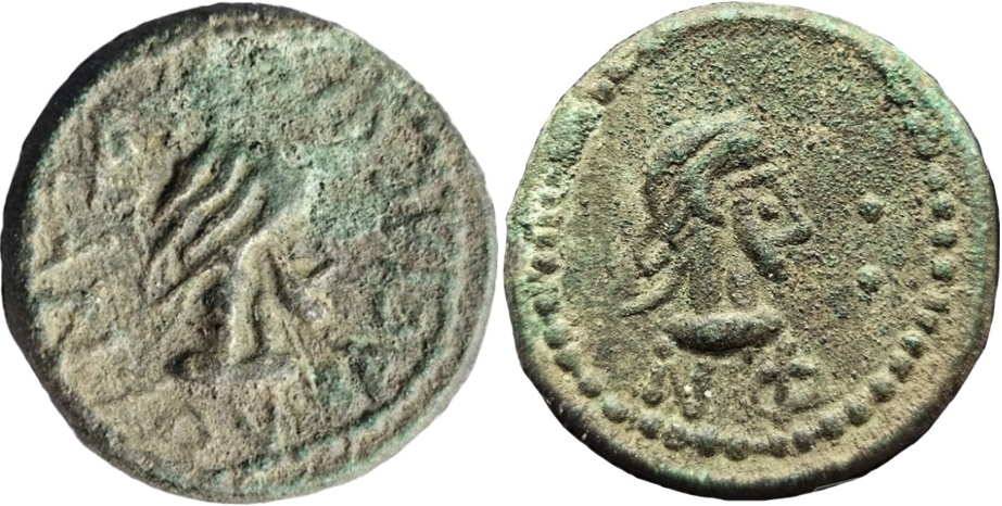 - Бюст императора вправо, год ΝΦ (550 г б.э.), справа «две точки»