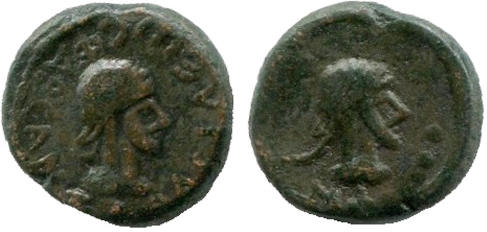- Бюст императора вправо, год ΝΦ (550 г б.э.), справа «две точки»