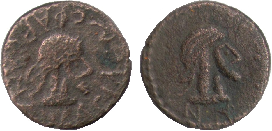 - Бюст императора вправо, год ΝΦ (550 г б.э.), справа «две точки»
