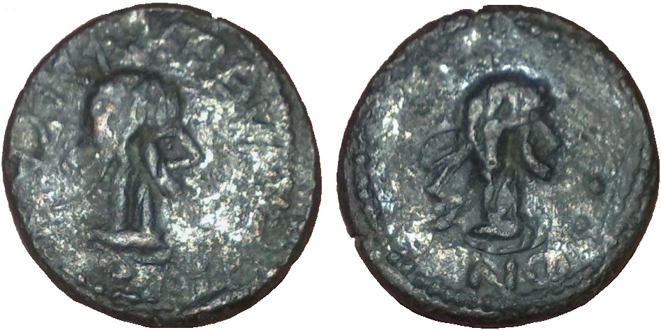 - Бюст императора вправо, год ΝΦ (550 г б.э.), справа «две точки»