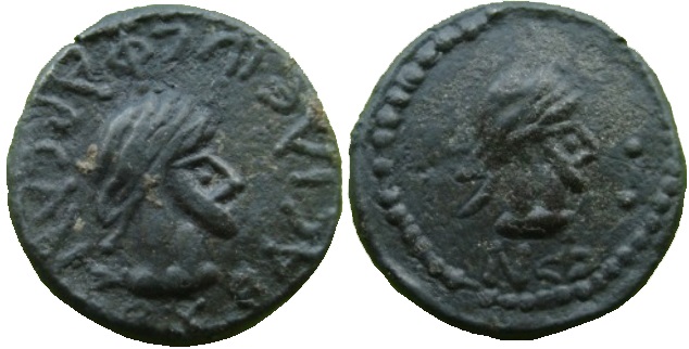 - Бюст императора вправо, год ΝΦ (550 г б.э.), справа «две точки»