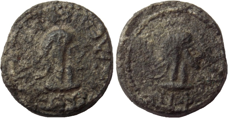 - Бюст императора вправо, год ΝΦ (550 г б.э.), справа «две точки»