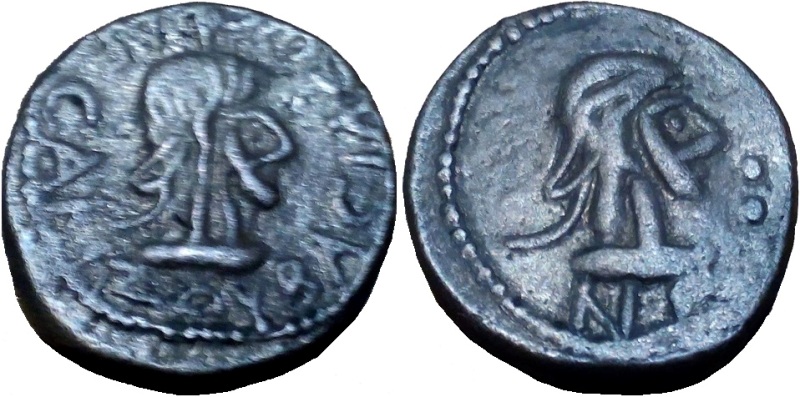 - Бюст императора вправо, год ΝΦ (550 г б.э.), справа «две точки»