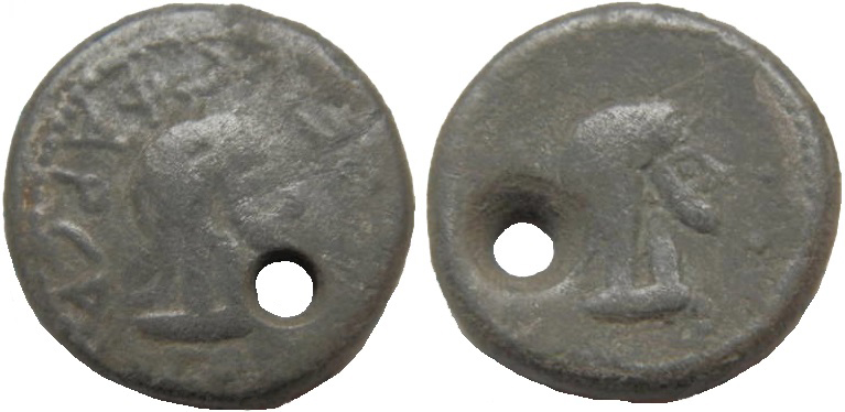 - Бюст императора вправо, год ΝΦ (550 г б.э.), справа «две точки»