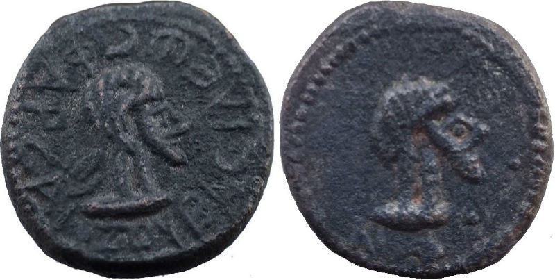 - Бюст императора вправо, год ΝΦ (550 г б.э.), справа «две точки»