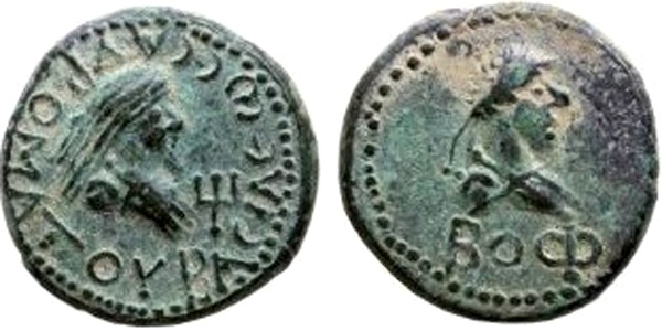 Бюст императора вправо, год BOΦ (572 г. б.э.)