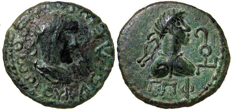 - Бюст императора вправо, тамга иной формы, год ΓΠΦ (583 г. б. э.)