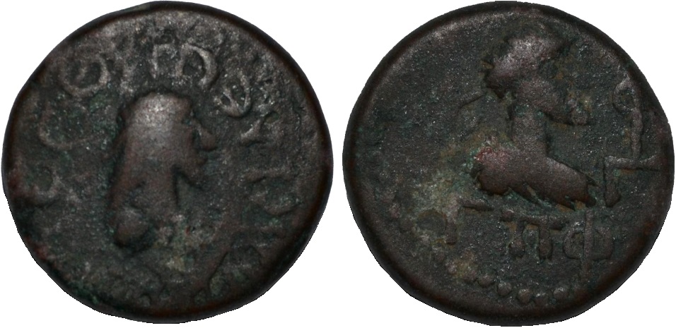 - Бюст императора вправо, тамга иной формы, год ΓΠΦ (583 г. б. э.)