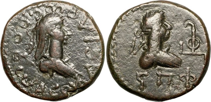 - Бюст императора вправо, справа тамга, год ςΠΦ (586 г. б. э.)
