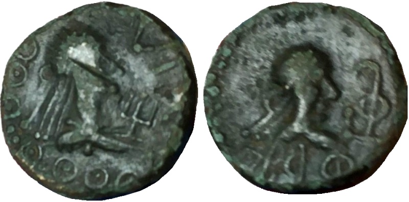 ..ΙΛΕΟC ΘΘΘΘΘC... Бюст царя вправо, справа «трезубец»