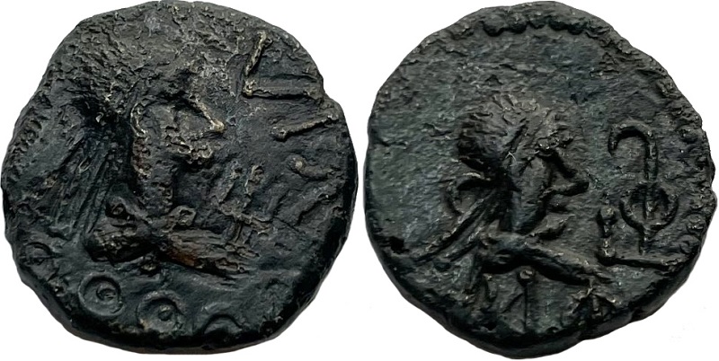 ..ΙΛΕΟC ΘΘΘΘΘC... Бюст царя вправо, справа «трезубец»