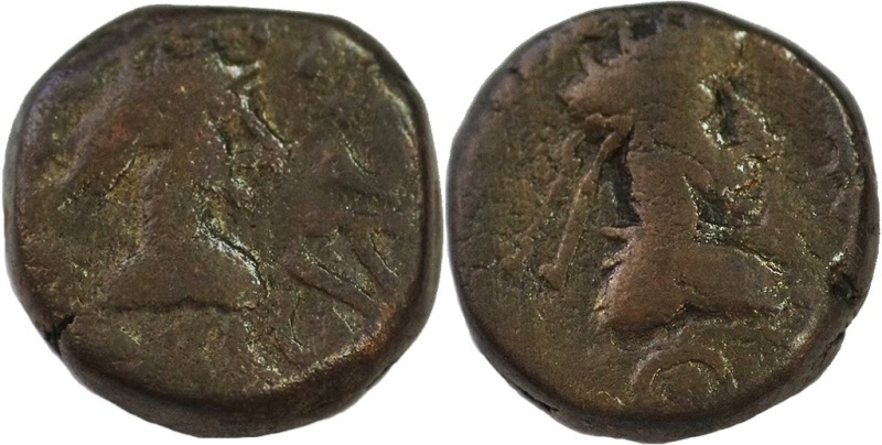 Бюст императора вправо, справа «палица», внизу год ΘΧ (609 г. б. э.)
