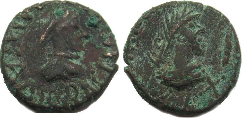 - Бюст императора вправо, справа «палица», внизу год ΔΙΧ (614 г. б. э.)