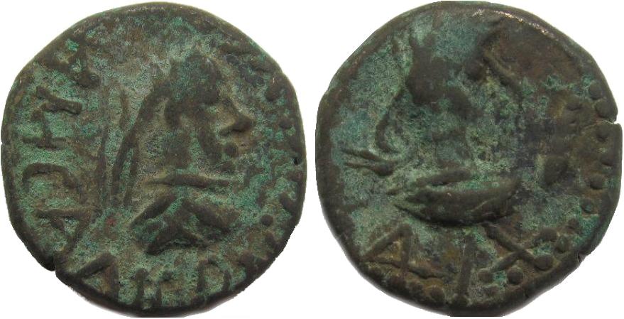 - Бюст императора вправо, справа «палица», внизу год ΔΙΧ (614 г. б. э.)