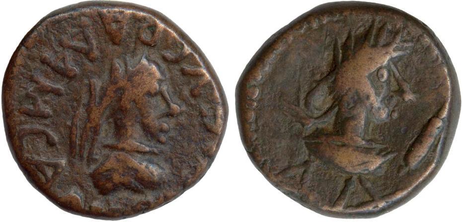 - Бюст императора вправо, справа «палица», внизу год ΔΙΧ (614 г. б. э.)