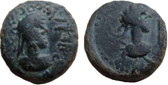 - Бюст императора вправо, справа «палица», внизу год ΔΙΧ (614 г. б. э.)