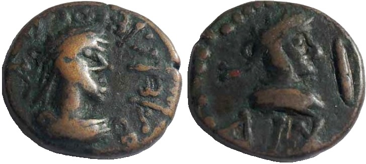 - Бюст императора вправо, справа «палица», внизу год ΔΙΧ (614 г. б. э.)