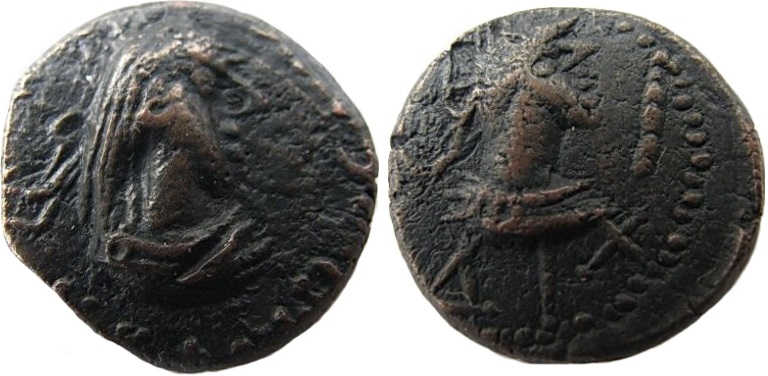 - Бюст императора вправо, справа «палица», внизу год ΔΙΧ (614 г. б. э.)
