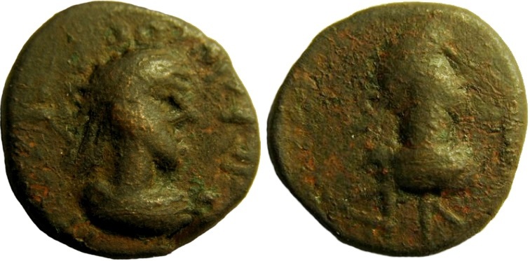 - Бюст императора вправо, справа «палица», внизу год ΔΙΧ (614 г. б. э.)