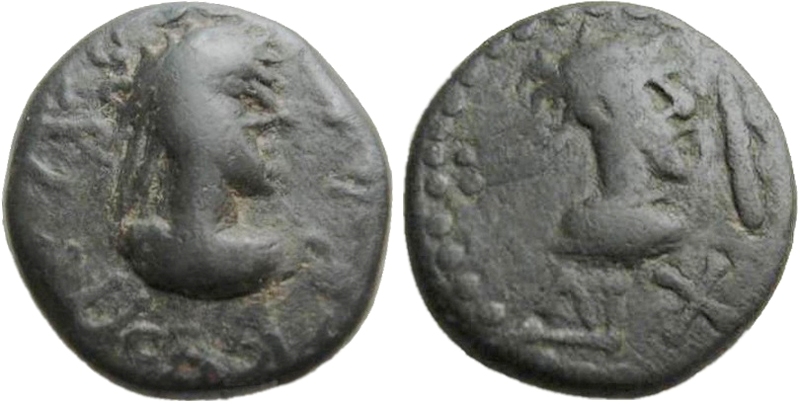 - Бюст императора вправо, справа «палица», внизу год ΔΙΧ (614 г. б. э.)