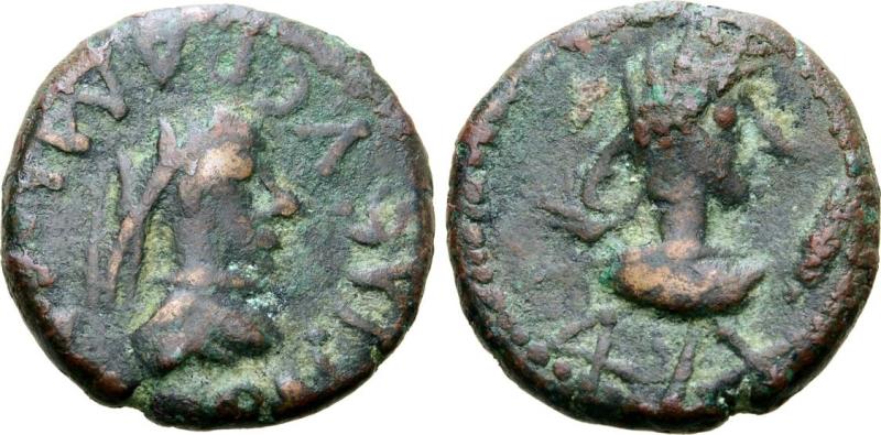 - Бюст императора вправо, справа «палица», внизу год ΔΙΧ (614 г. б. э.)