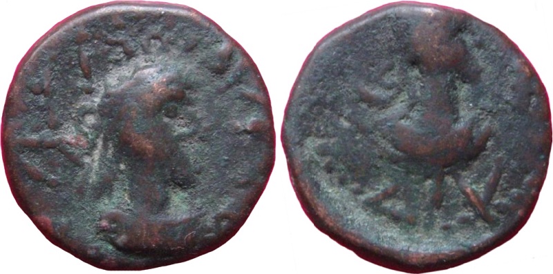 - Бюст императора вправо, справа «палица», внизу год ΔΙΧ (614 г. б. э.)