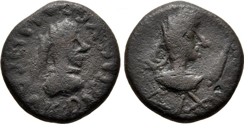 - Бюст императора вправо, справа «палица», внизу год ΔΙΧ (614 г. б. э.)