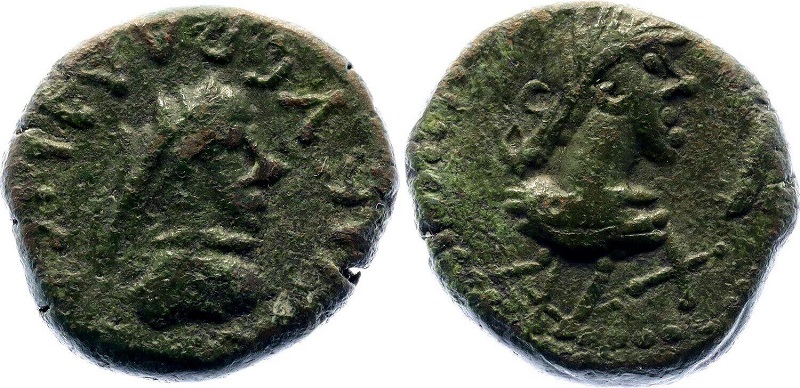 - Бюст императора вправо, справа «палица», внизу год ΔΙΧ (614 г. б. э.)