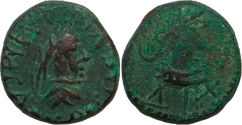 - Бюст императора вправо, справа «палица», внизу год ΔΙΧ (614 г. б. э.)
