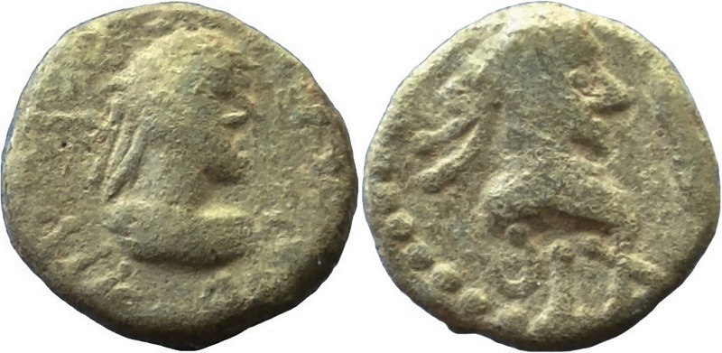 Бюст императора вправо, справа «палица», внизу год ΔΙΧ (614 г. б. э.)