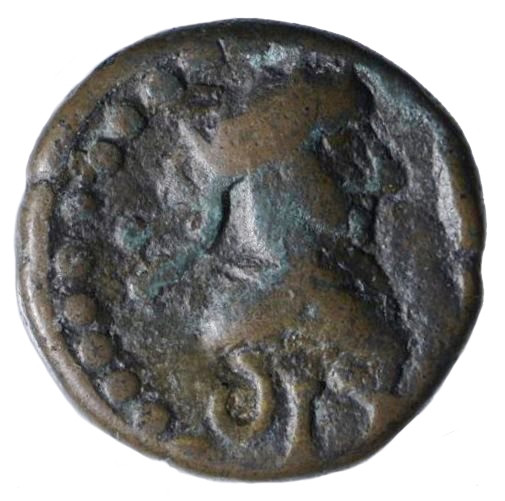 Бюст императора вправо, справа «палица», внизу год ΔΙΧ (614 г. б. э.)