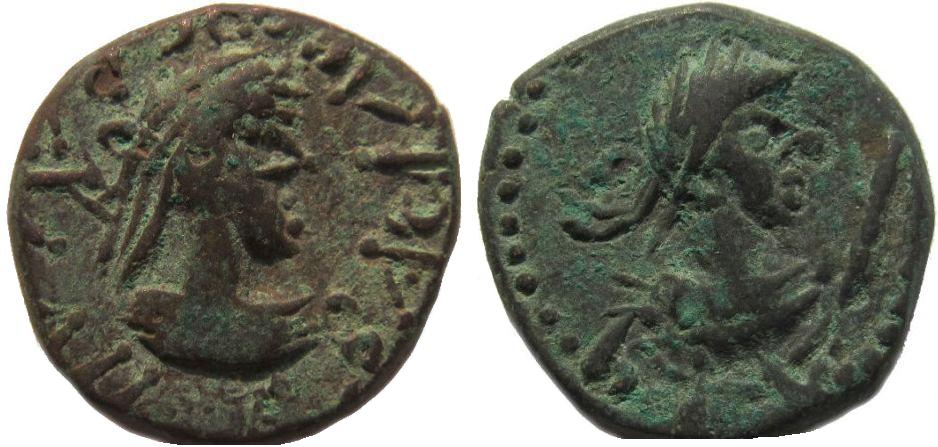 - Бюст императора вправо, справа «палица», внизу год ΕΙΧ (615 г. б. э.)
