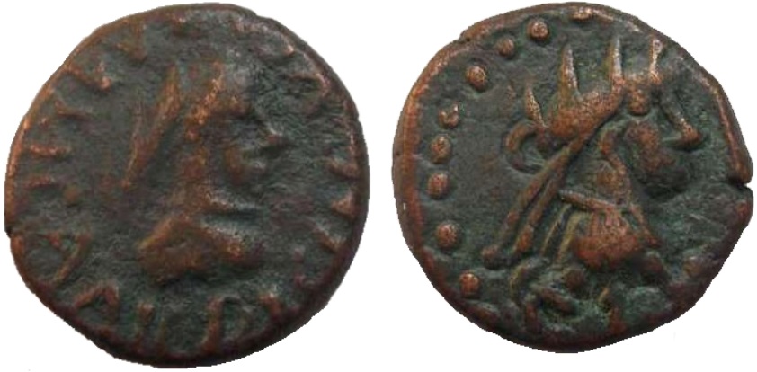 - Бюст императора вправо, справа «палица», внизу год ΕΙΧ (615 г. б. э.)
