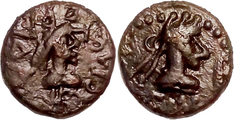 - Бюст императора вправо, справа «палица», внизу год ΕΙΧ (615 г. б. э.)