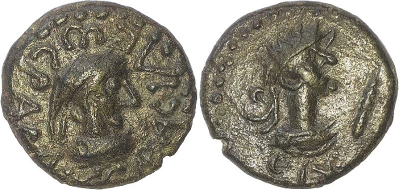 - Бюст императора вправо, справа «палица», внизу год ΕΙΧ (615 г. б. э.)