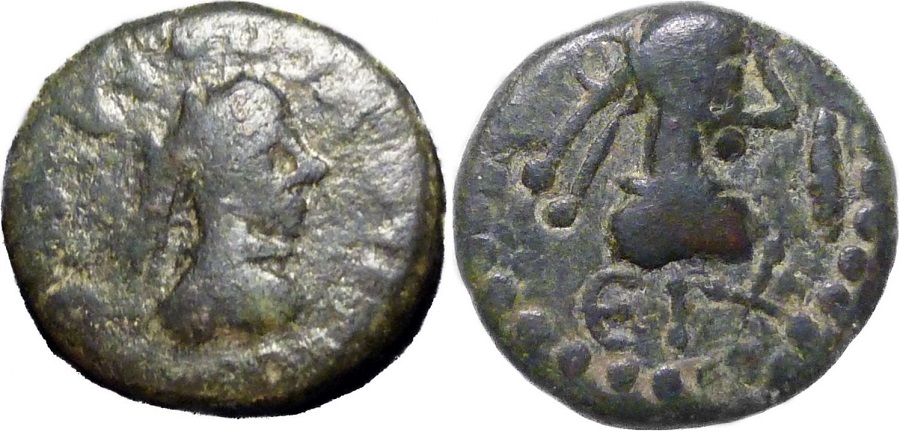 - Бюст императора вправо, справа «палица», внизу год ΕΙΧ (615 г. б. э.)