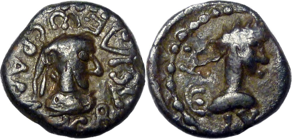 - Бюст императора вправо, справа «палица», внизу год ΕΙΧ (615 г. б. э.)