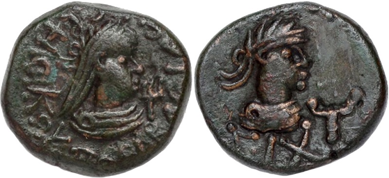Бюст императора вправо, внизу год ZΙΧ (617 г. б.э.), справа «двузубец»