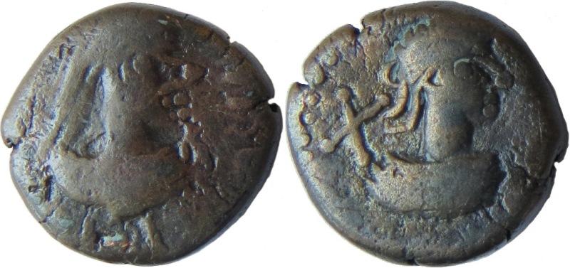Бюст императора вправо, по сторонам бюста год ΗΙΧ (618 г. б. э.) слева Х, справа вертикально НI