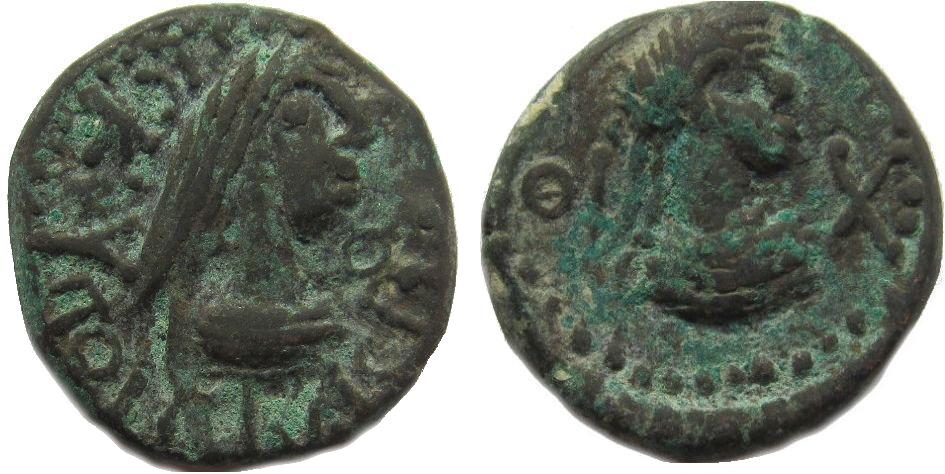 - ΒΑCΙΛΕωC ΡΗCΚΟΥΠΟΡΙC. Бюст царя вправо, справа «венок»