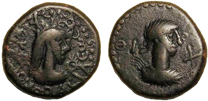 - Бюст императора вправо, год ΘΙ-Χ (619 г. б.э.)