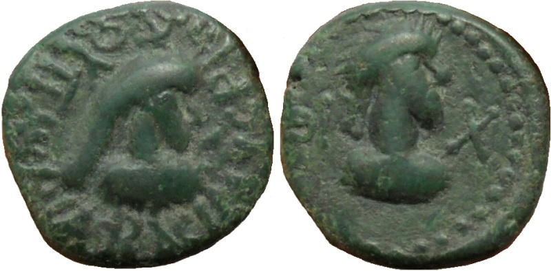 - ΒΑCΙΛΕωC ΡΗCΚΟΥΠΟΡΙC. Бюст царя вправо, справа «венок»